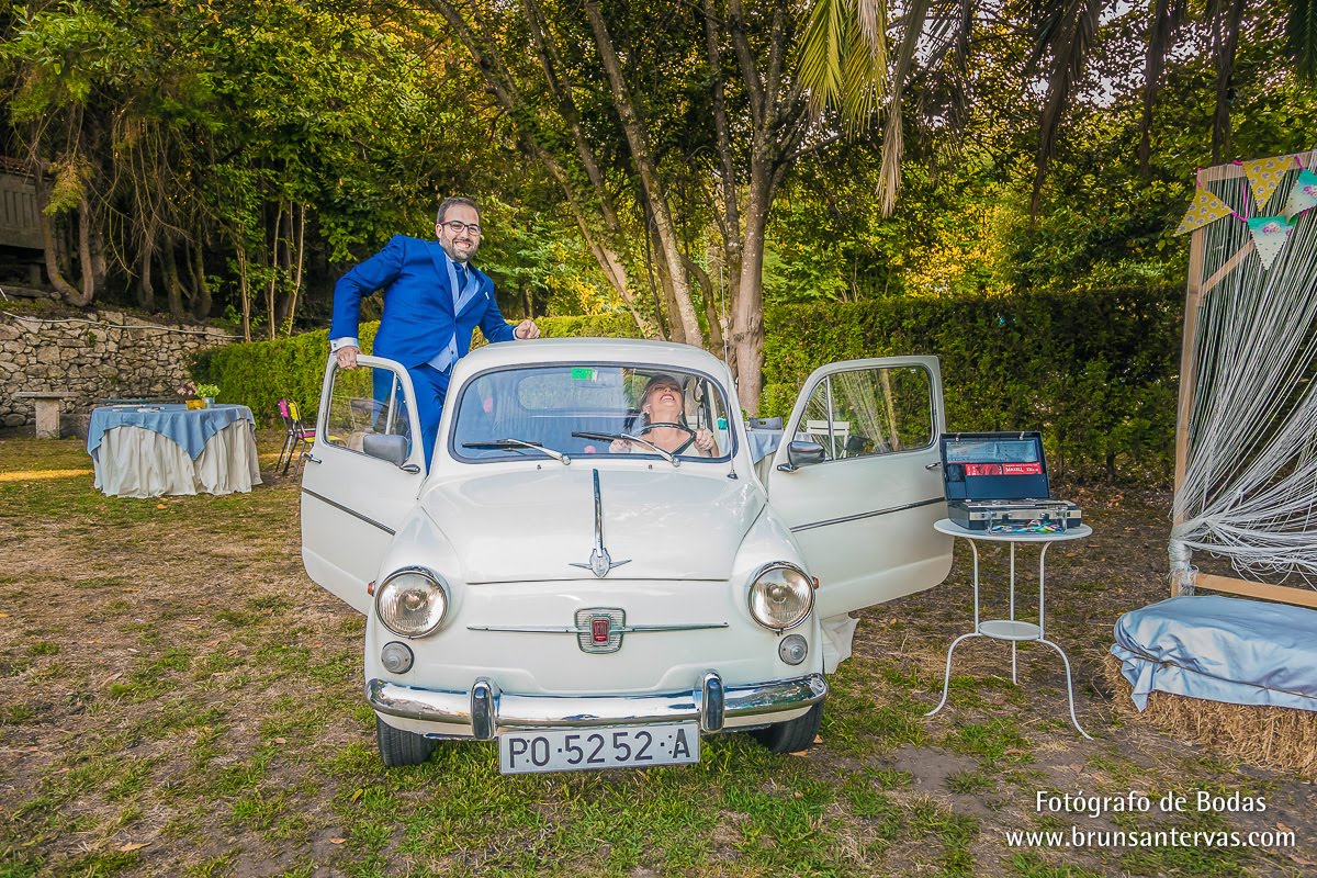 Tenéis mucha diversidad en vuestra boda a la hora de elegir un coche de novios. Podéis ir en uno clásico o de época, algo más moderno o incluso en un coche de rally. Tania y Diego han ido en el suyo propio pero, el gusto de Tania por el Mini antiguo ha hecho que Diego la haya sorprendido en el aperitivo, haciendo que aparcasen en medio de la finca donde iban a tomar el cocktail esta preciosa antigüedad. Sin duda la sorpresa para la novia ha sido enorme!! Casi se nos escapa y todo!!! jajaja.
