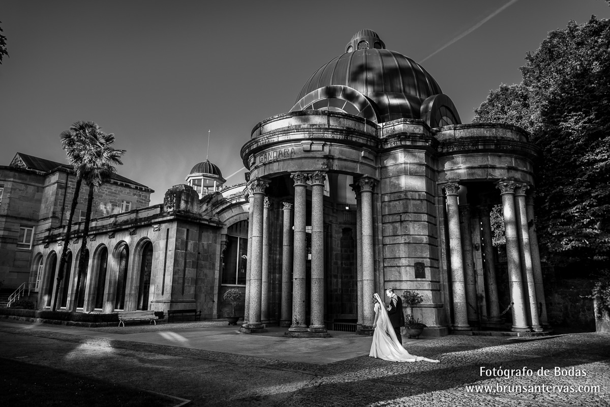 Precioso día el que hemos tenido en la boda de Raquel y Agus. Y precioso y espectacular también es el entorno y el lugar que han escogido para celebrar el banquete. Los exteriores del Balneario de Mondariz son increíbles. Esta fotografía es donde se encuentra la fuente de la Gándara y el propio Balneario. Sin duda un lugar increíble donde nos sobran rincones para obtener una buena foto.